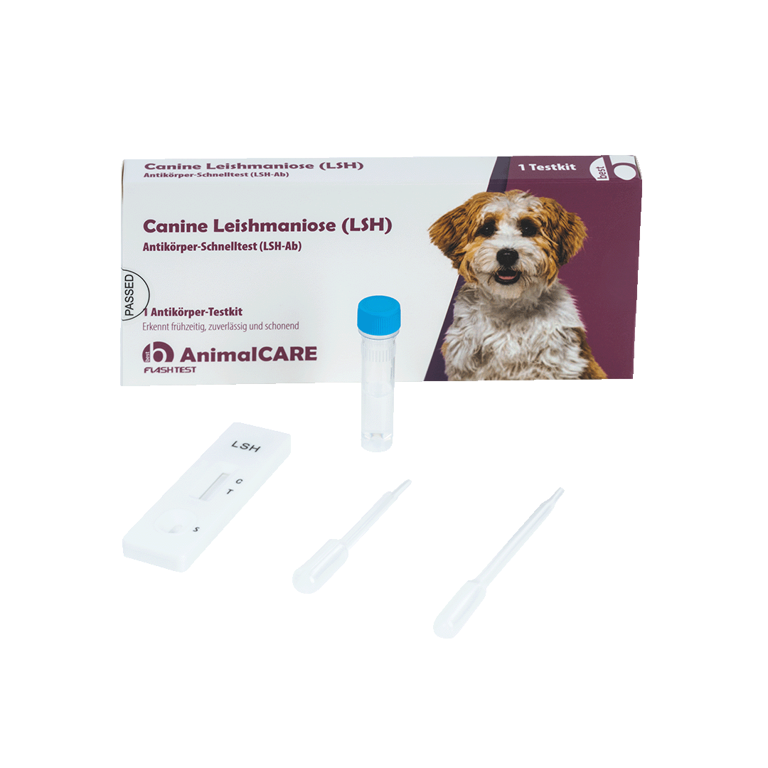Canine Leishmaniose (LSH) Antikörper-Schnelltest von best AnimalCARE hilft bei der frühzeitigen Erkennung der Erkrankung und kann dadurch zu einer schnelleren Diagnose beim Tierarzt führen.