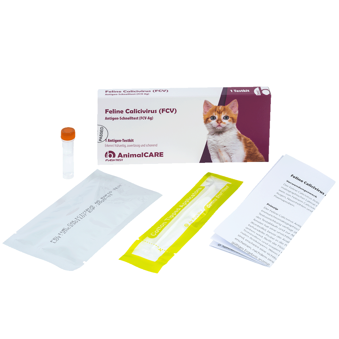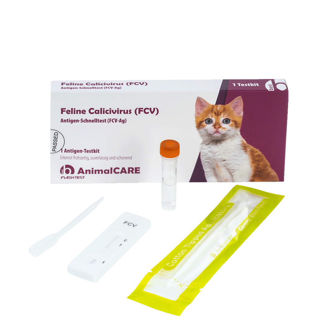 Der Feline Calicivirus (FCV) Antigen-Schnelltest von best AnimalCARE hilft bei der frühzeitigen Erkennung der Erkrankung und kann dadurch zu einer schnelleren Diagnose beim Tierarzt führen.