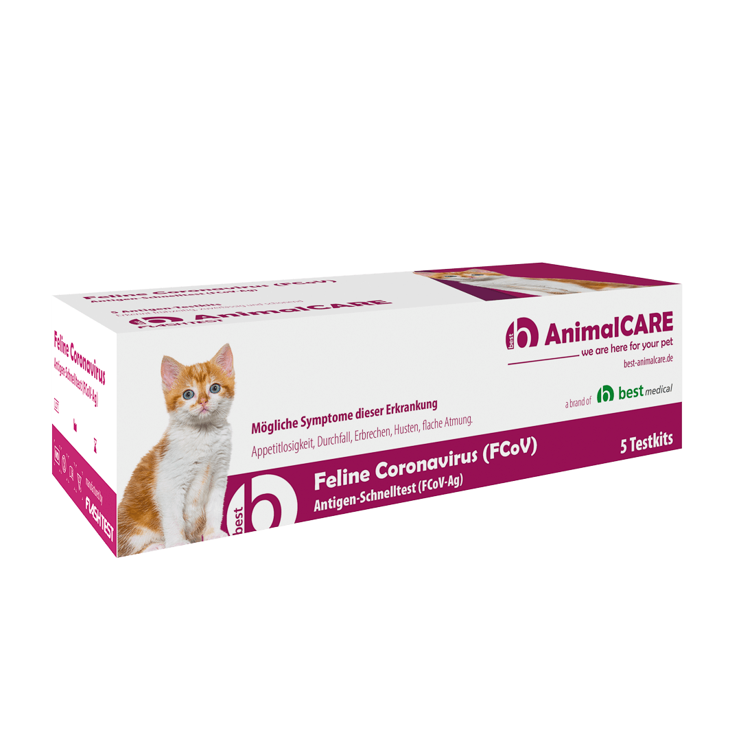 Der Feline Coronavirus (FCoV) Antigen-Schnelltest von best AnimalCARE hilft bei der frühzeitigen Erkennung der Erkrankung und kann dadurch zu einer schnelleren Diagnose beim Tierarzt führen.
